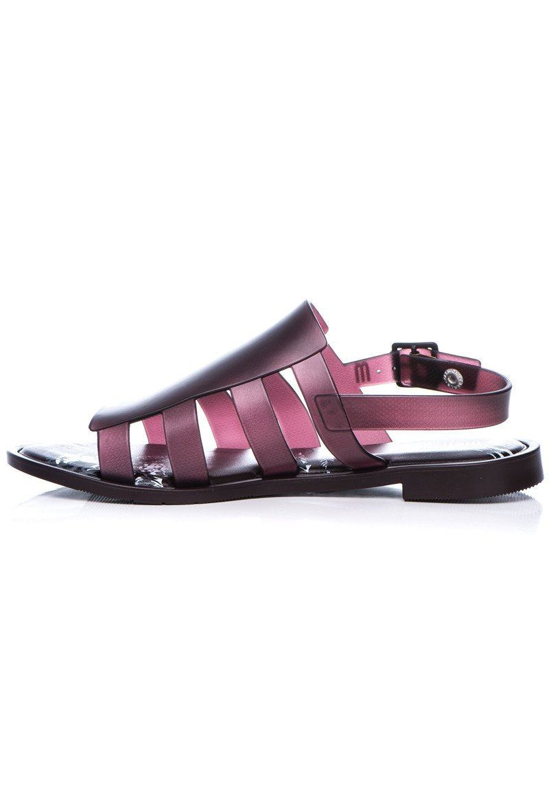 Superfeminina, Melissa Bohemia is a rereading of the gladiator sandal that exploits multiple wide strips on the sides with leather in straight lines, giving modernity the new shape of the brand.